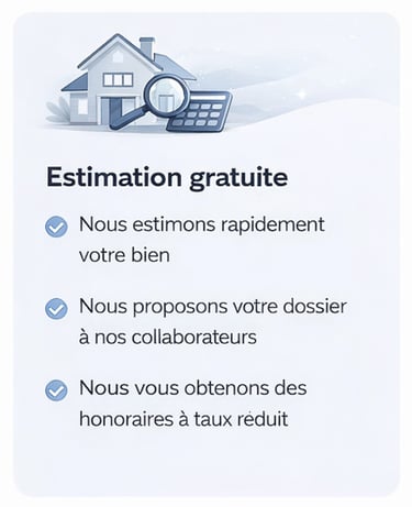 Nous négocions pour vous et en direct les commissions et honoraires des professionnels retenus pour vous accompagner sur tous vos projets. Nous pouvons également sélectionner plusieurs intervenants de notre réseau, en cas de vente immobilière par exemple. VOUS faites le choix des intervenants que nous vous présentons. "Gratuit et sans engagement".